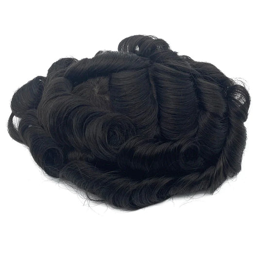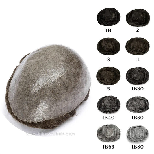 Men's Hair Piece Toupee Human hair replacement wig Colour 1B Natural Black and White Grey hair system toupees for black men
