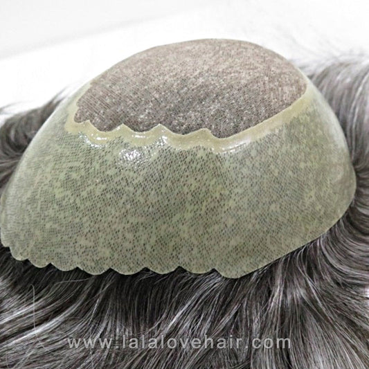 8*10" BOND #1B White Hair Men Toupee Human Hair Mix Grey Hair Replacement System Hair Salon