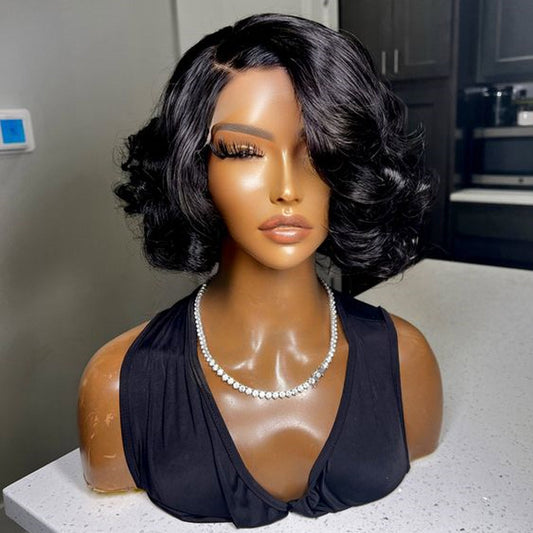 Wig Short Bob 4x4 Human Hair Wig Bouncy Wave Natural Closure Wig for Women 12inch 200% Density