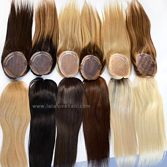 Multi Size Human Hair Silky Straight Women Topper Hair Pieces Clips in Women Toupee
