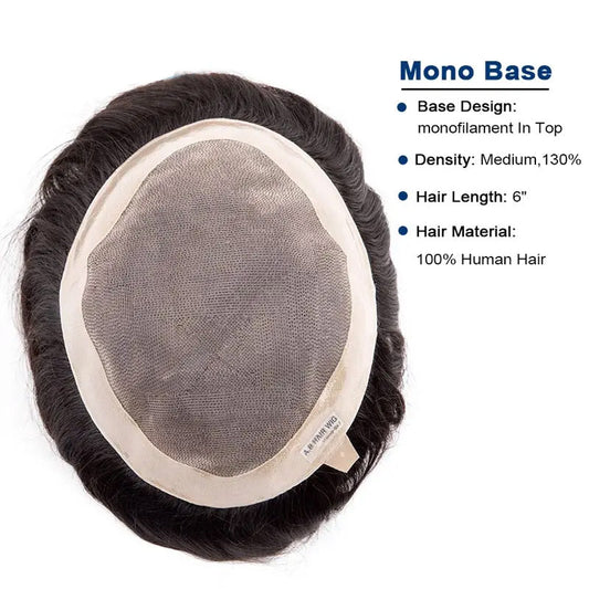 DURA Mono Toupee Hair Durable Man Wig Natural Indian Human Hair Wig for Men Breathable Mens Hair System