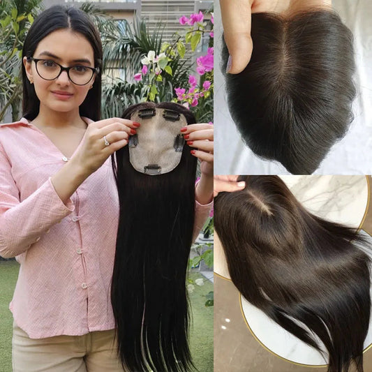 5x8cm Hand Tied Silk Base Virgin Hair Toppers 2 Clips For Women Silkty Straight Natural Scalp For Thinning Hair