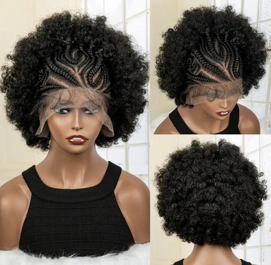 250% Density 13x6 Hd Lace Frontal Braided Wig Afro Kinky Curly Synthetic Wig Baby Hair Fluffy Curled Striped Braided Curly wig