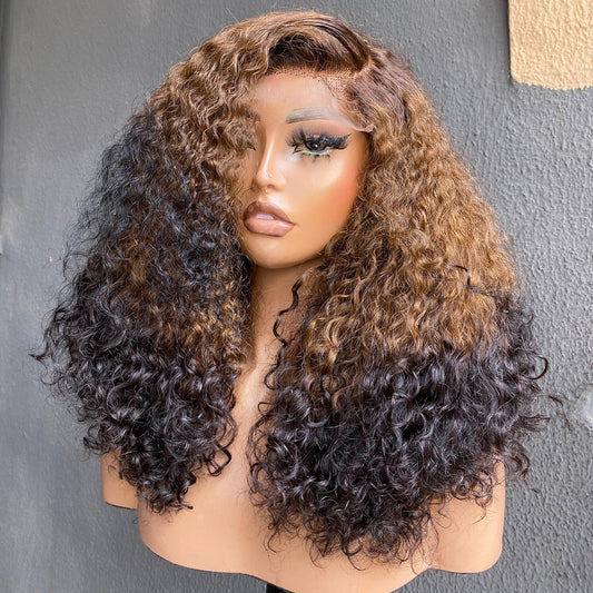 13x4 Frontal / 4x4 Lace Closure Wig Honey Blond Highlight Piano Color P4/27 kinky Curly Lace Wig