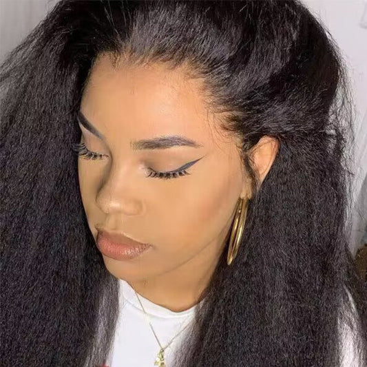 180% 210% Kinky Straight 13x4 & 13x6 Full Frontal Lace Wig Natural Color Human Hair Wigs