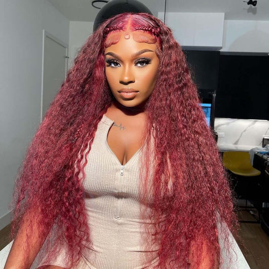 13x4 Frontal / 4x4 Lace Closure Wig Burgundy Light #99J Color Deep Wave Lace Wig