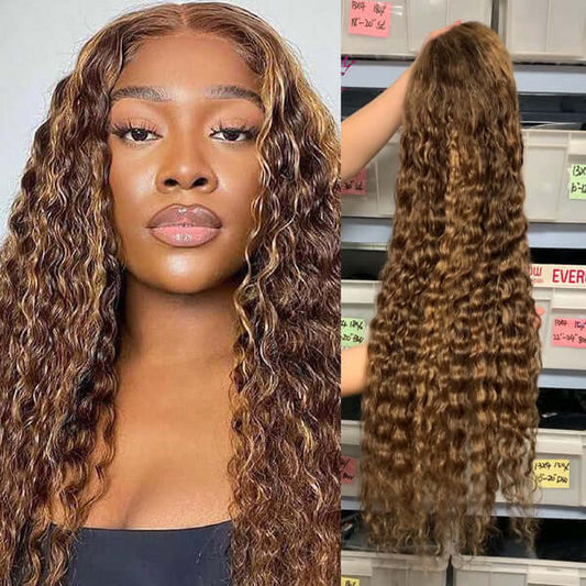 13x4 Frontal / 4x4 Lace Closure Wig #4/27 Highlight Piano Color Deep Wave Lace Wig