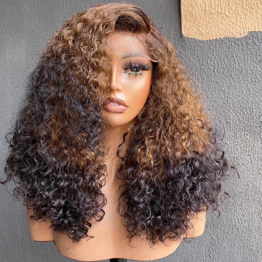 22inch 250% Density Human Hair 13x4 lace wig curly hair Ombre color