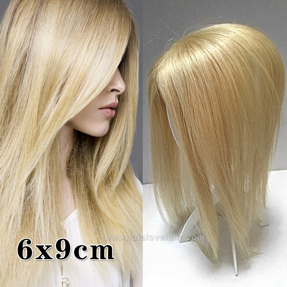 6x9cm #613 Blonde Virgin Human Hair Toppers for Women Clip in Toupee Silk Base Hairpieces