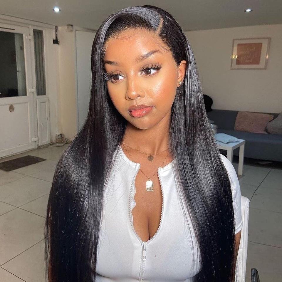180% 210% Silky Straight Human Hair 4x4 13x4 13x6 Full Frontal lace Wigs