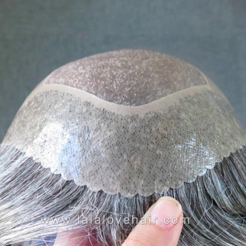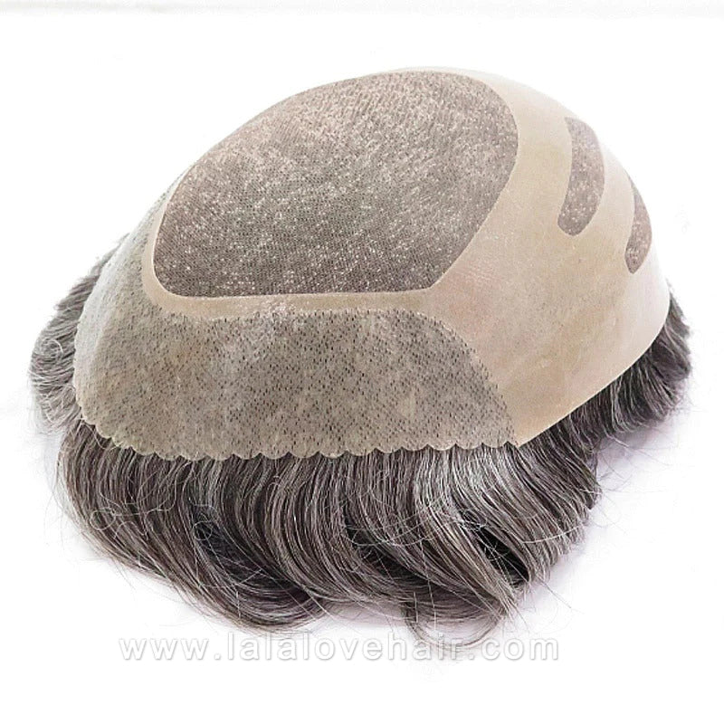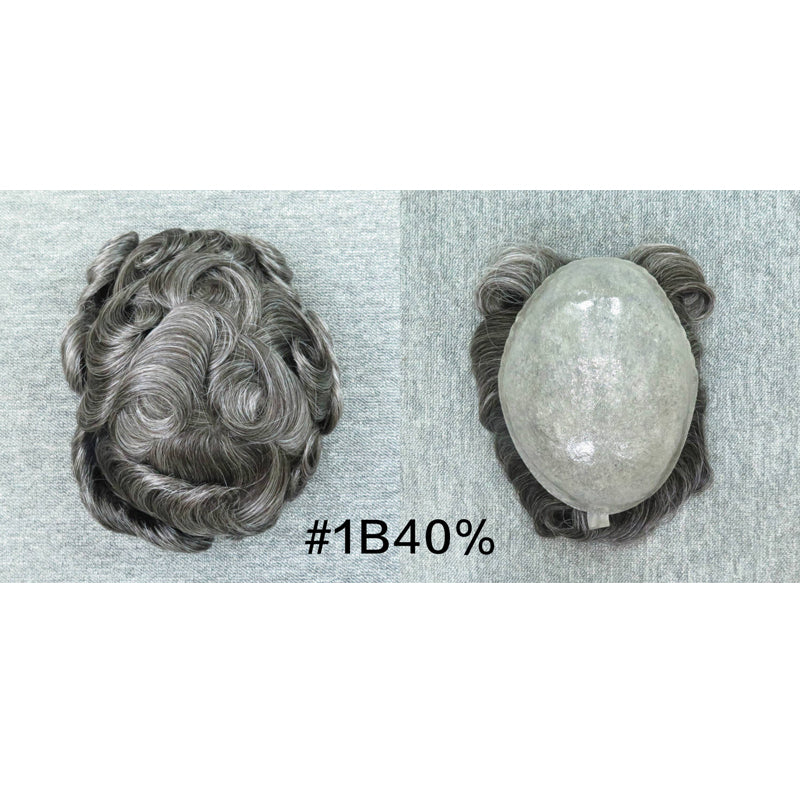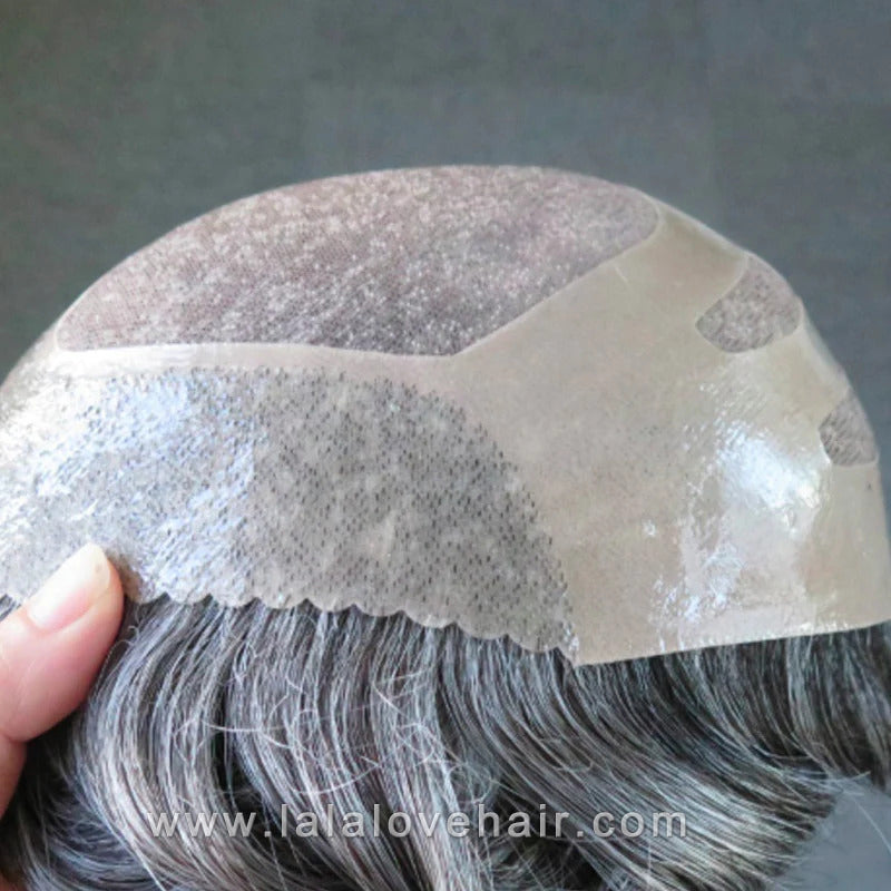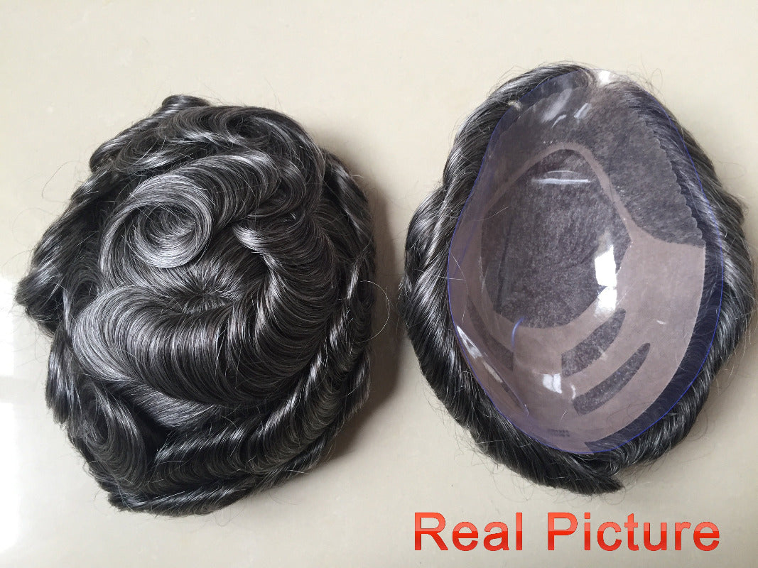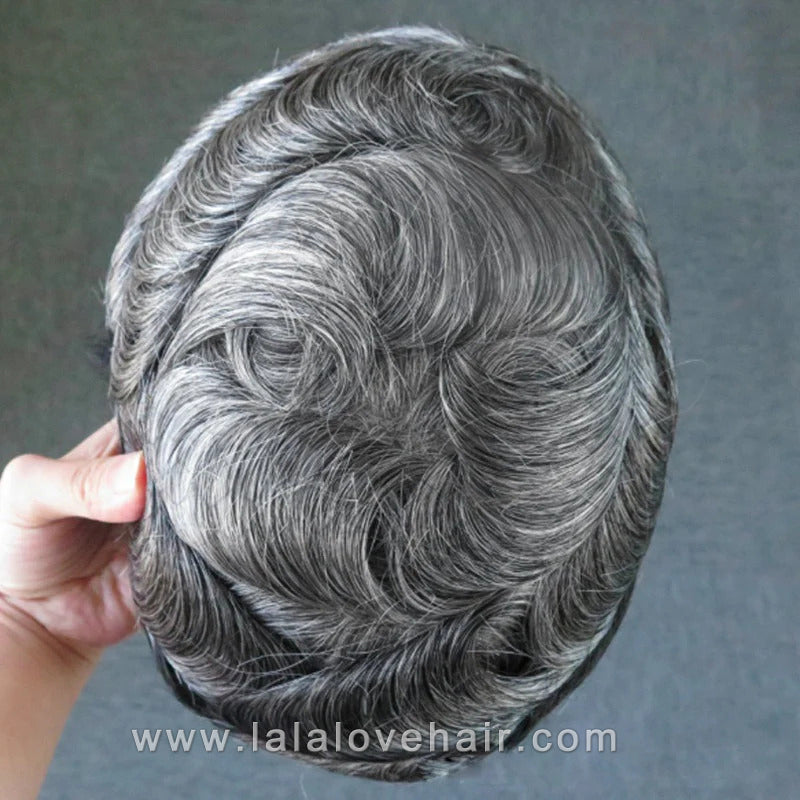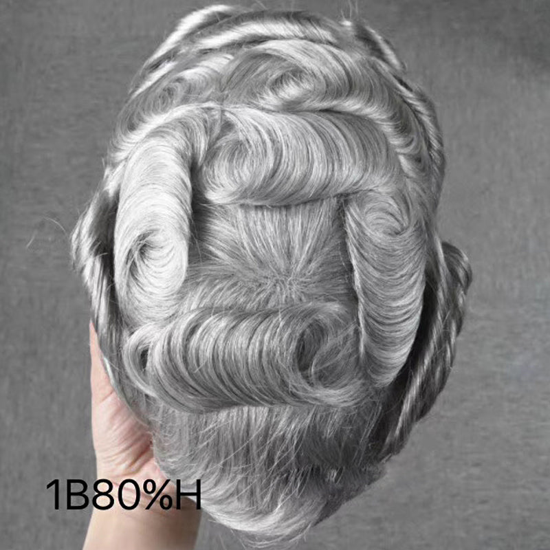 8*10" BOND #1B White Hair Men Toupee Human Hair Mix Grey Hair Replacement System Hair Salon