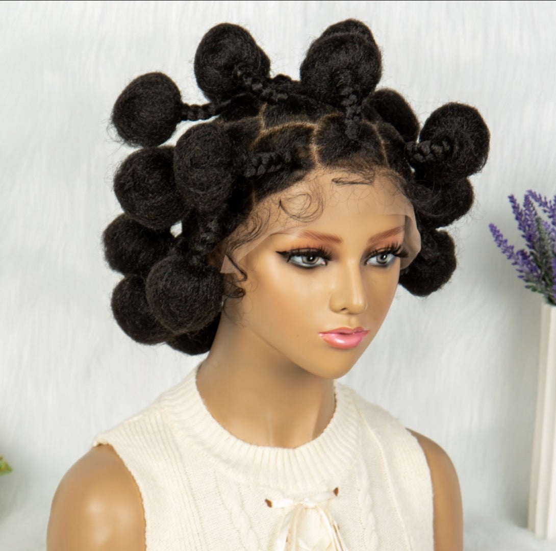Bantu Full Lace Braided Wigs Synthetic Lace Front Handmade Kontless Box Braiding Hair Wig