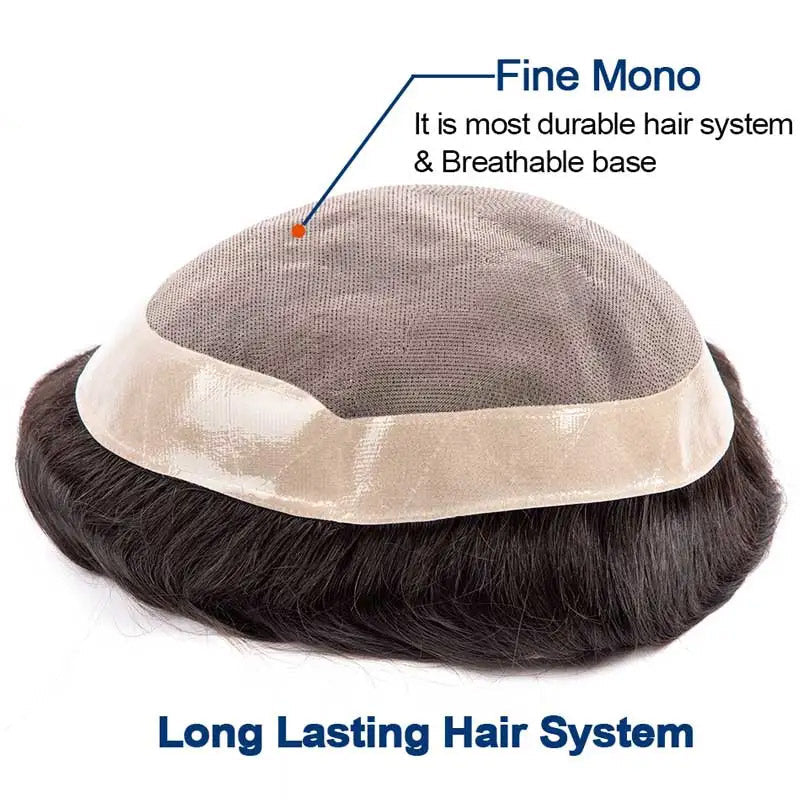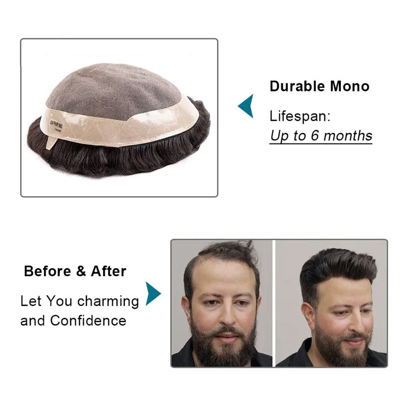 DURA Mono Toupee Hair Durable Man Wig Natural Indian Human Hair Wig for Men Breathable Mens Hair System