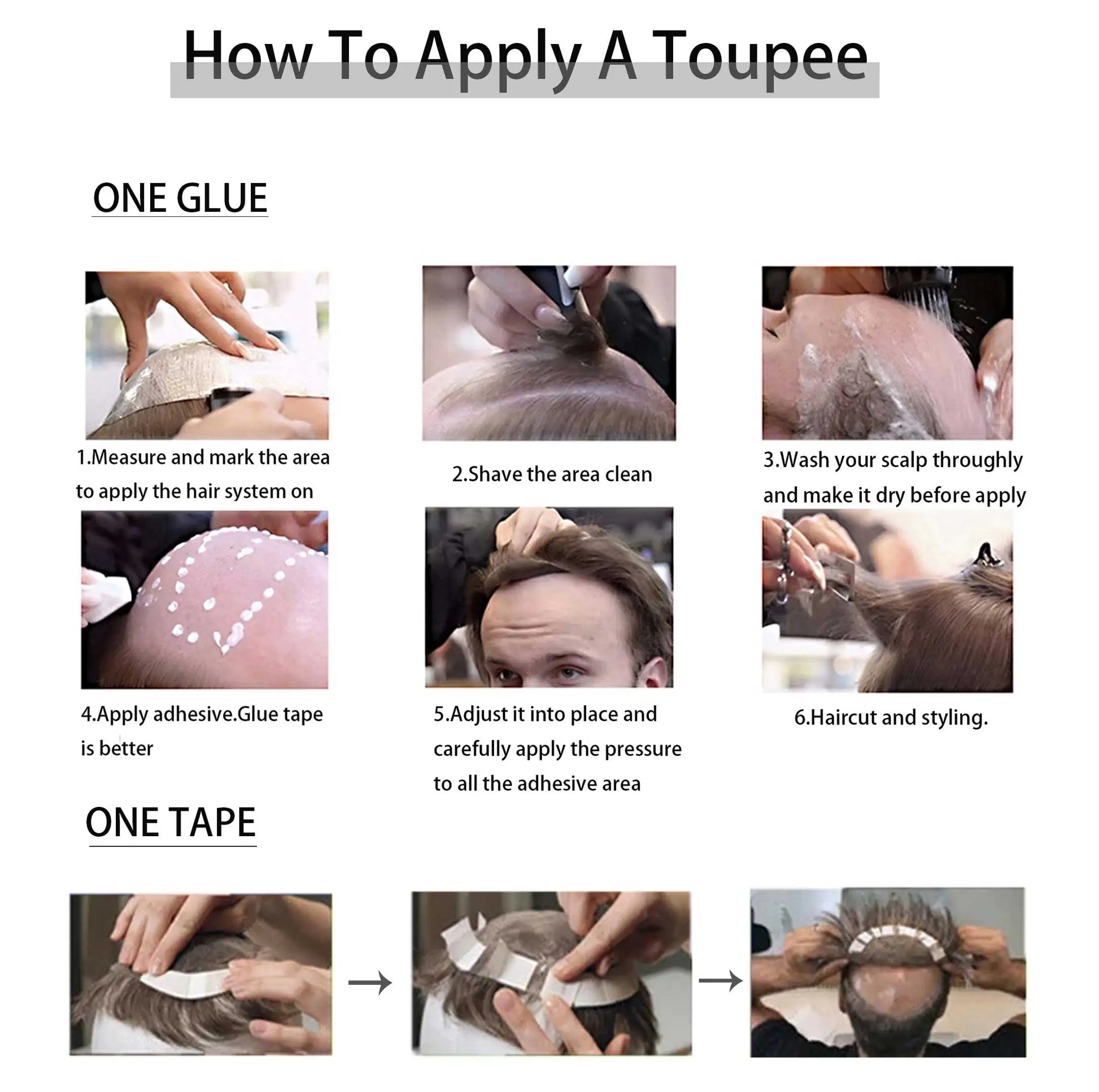 3/ Fit the hair replacement (toupee hairpiece) on your scalp;