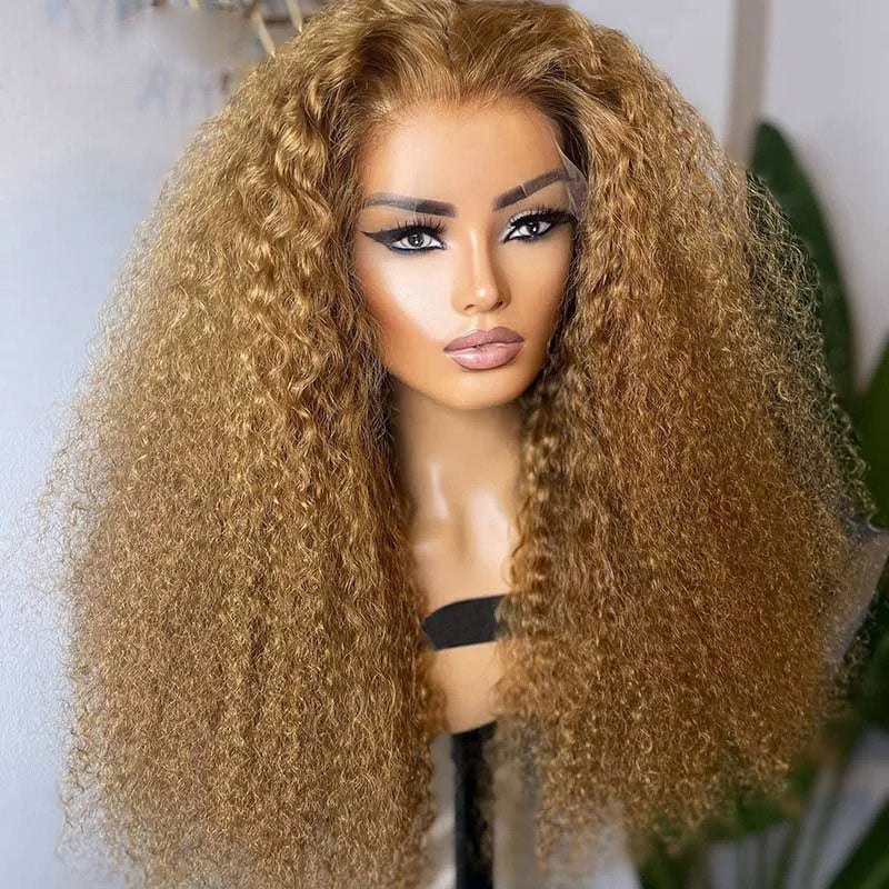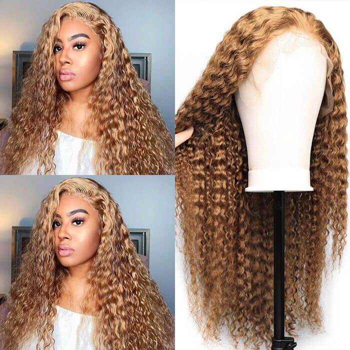 13x4 Frontal / 4x4 Lace Closure Wig Honey Blond #27 Color Jerry Curly Lace Wig