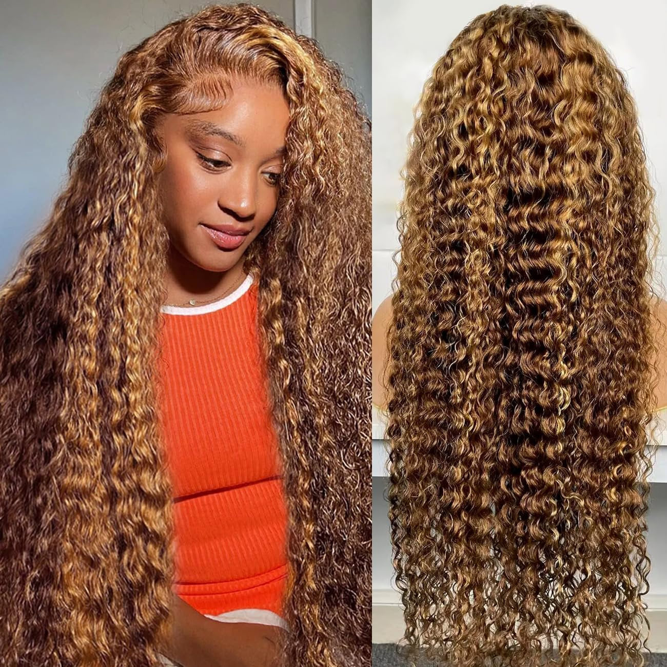 13x4 Frontal / 4x4 Lace Closure Wig #4/27 Highlight Piano Color Deep Wave Lace Wig