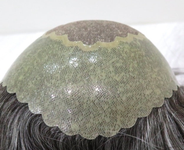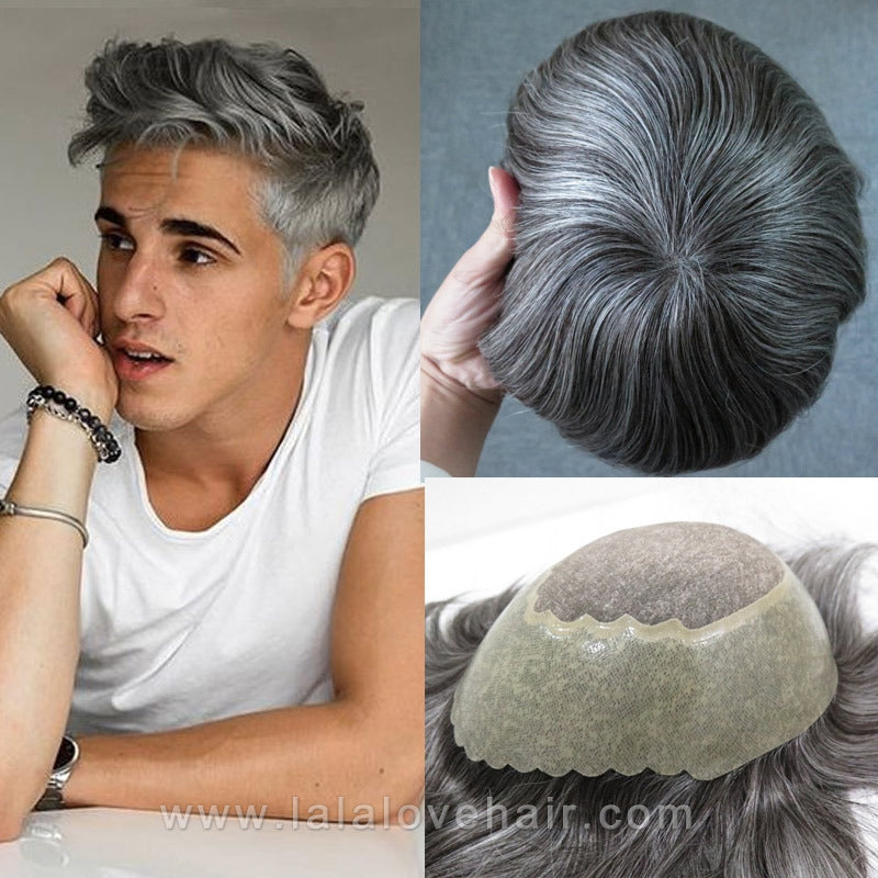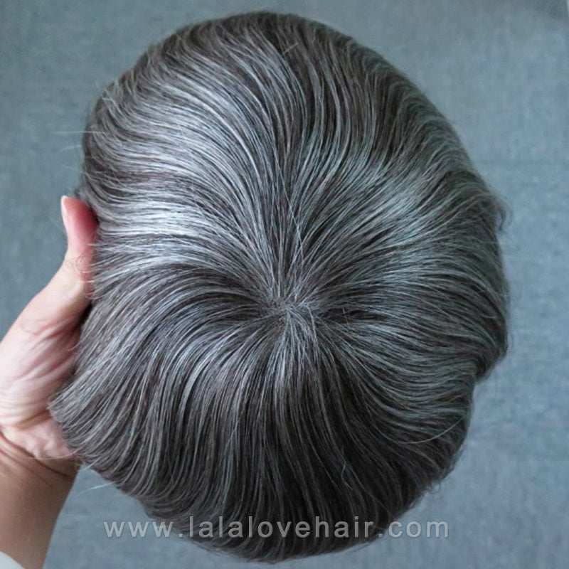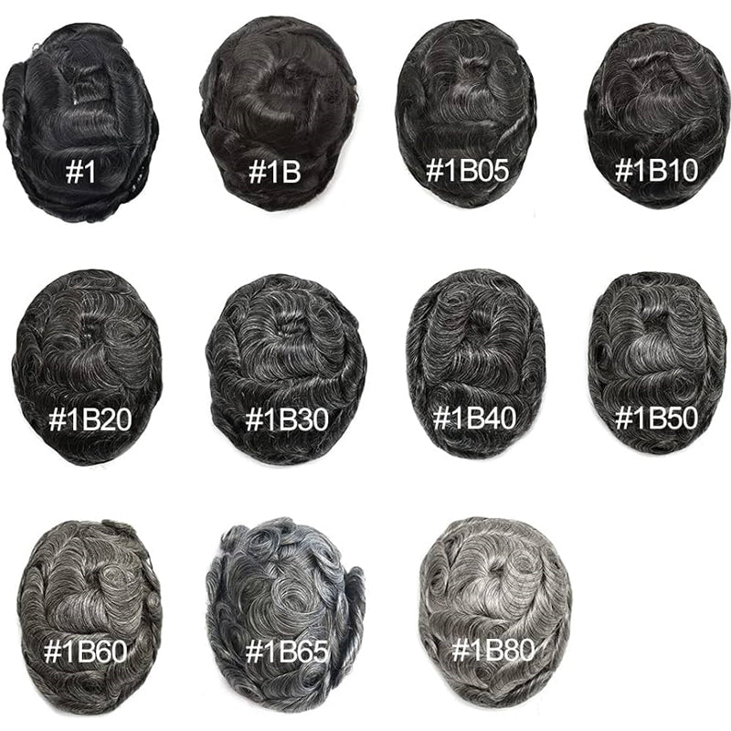 Men's Hair Piece Toupee Human hair replacement wig Colour 1B Natural Black and White Grey hair system toupees for black men