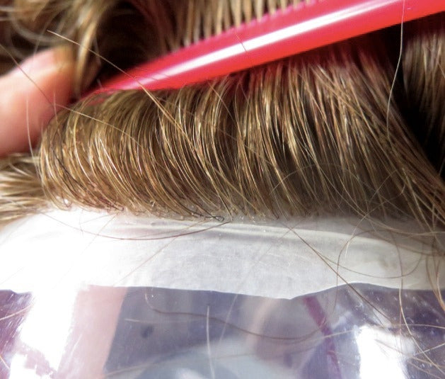 3/ Fit the hair replacement (toupee hairpiece) on your scalp;