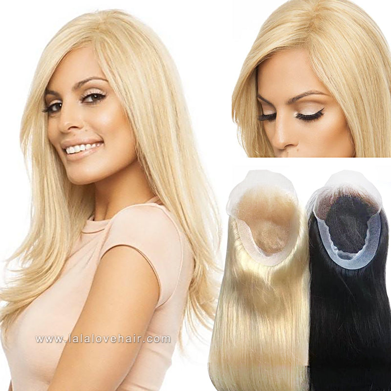 Q6 European Human Hair Topper Premium Human Hair Toupee for Women Swiss Lace With PU