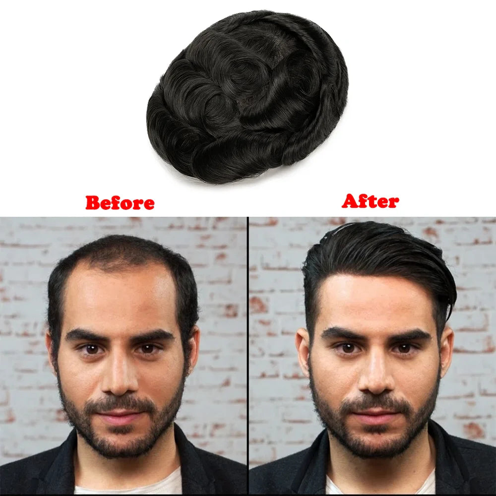 Q6 Lace Toupee Men Europe Human Hair Man Wig Male Wig Swiss Lace Front Wig With Pu Men Hair Replacement System Unit Natural Hair