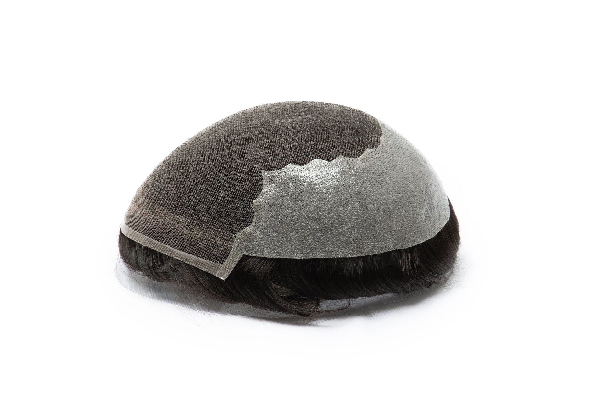 3/ Fit the hair replacement (toupee hairpiece) on your scalp;