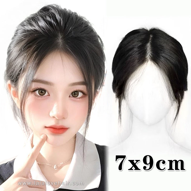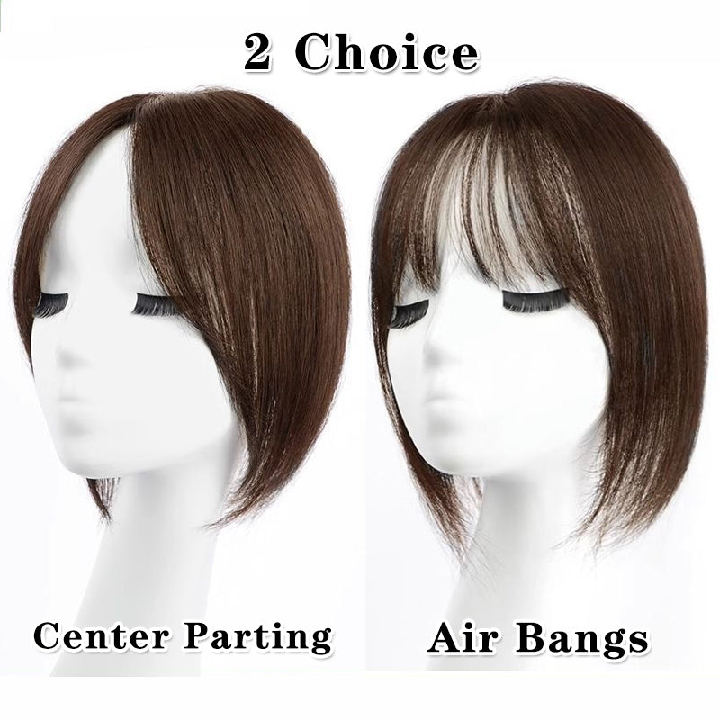 7x9cm Human Hair Piece for Women Toupee Covering White Hair Center Parting Shaped Bangs for Women Thin Hair Replacement