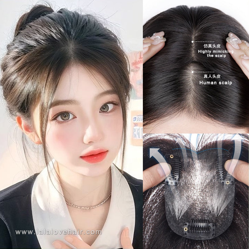 Suitable for women with thinning hair, gray hair, white hair or poor hair quality on top of head, can be middle or side part and even make a Fring.